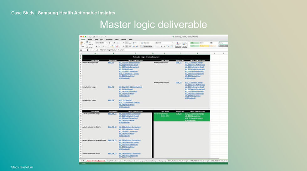 Partnered with UX researcher to test concepts with 8 users, refining usability, content card hierarchy, and coaching tone. Built strong collaboration with HQ dev teams to align on content priorities. Launched Actional Insights with Samsung S8 as a key Samsung Health enhancement.